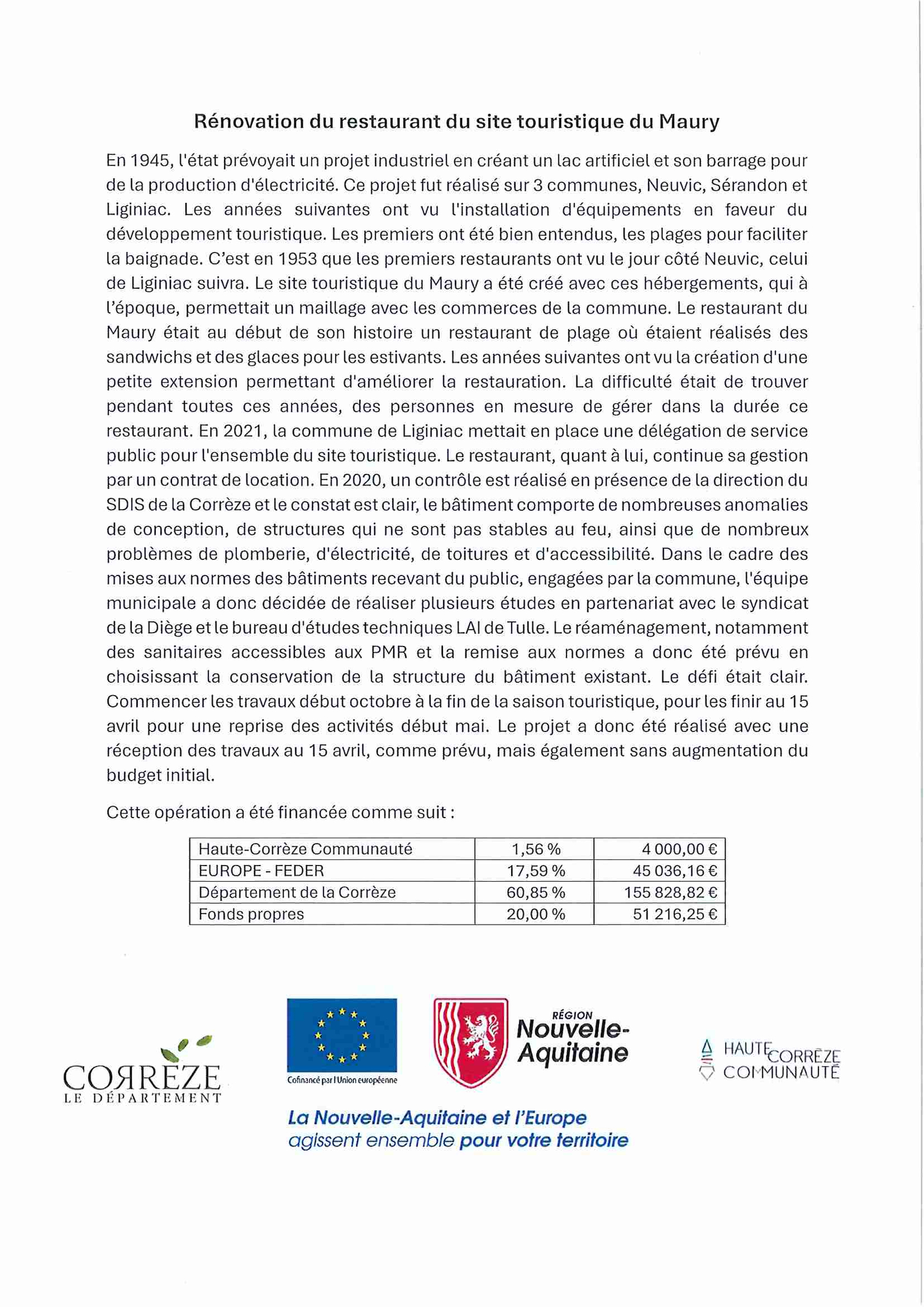 Rénovation du restaurant du site touristique du Maury