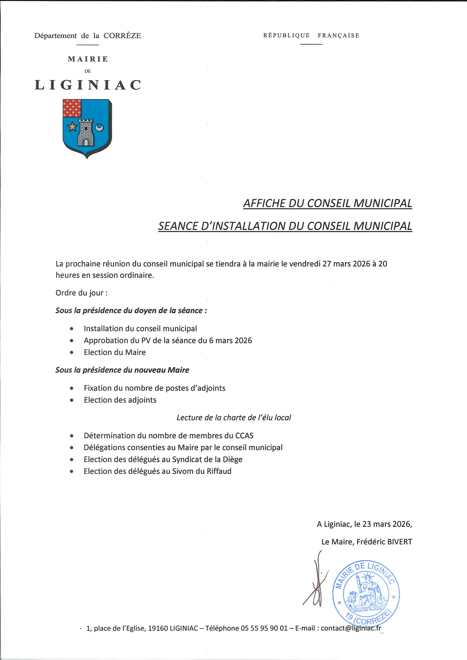 Affiche du Conseil municipal du vendredi 27 mars 2026 à 20h00